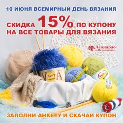 «Леонардо» присоединяется ко Всемирному дню вязания на публике: 10 июня товары для этого вида хобби будут продаваться со скидкой по специальному купону.