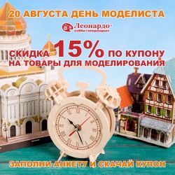 Отпразднуем День моделиста всей страной! В этот день поклонники моделирования смогут приобрести со скидкой материалы для своего хобби, жены – подарки для любимых коллекционеров, а мамы – развивающие 3D-пазлы для детей. Не забудьте заранее оформить купон.